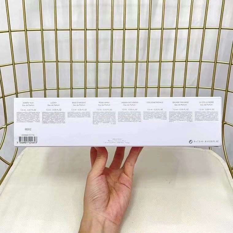Dior Collection Perfume Sample Set of 8 🔜Real shot📸In stock❗️No spray nozzle 7.5ml×8. 7.5ml without nozzle, comes with Chinese label at the same time. The set includes 🔜 classic sample flavors ➡︎Bohemian, Silver Shadow Green Wood, Lucky Wind Chime, Amber Fragrance, Montaigne Citrus, Wild Walk, Ink Mountain Flowers, Fragrant Beauty💢